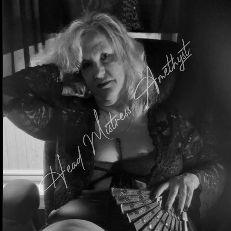 Kneel while looking at Head Mistress’ breasts